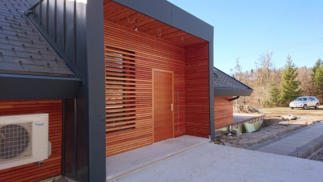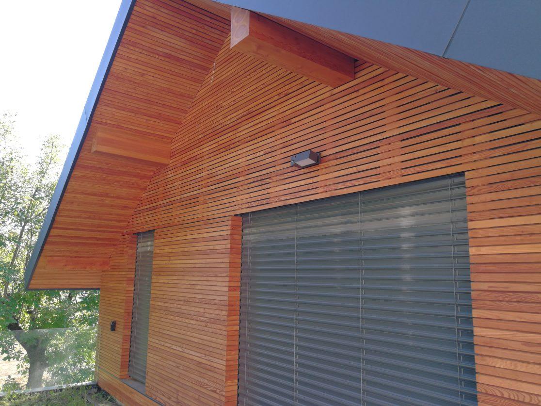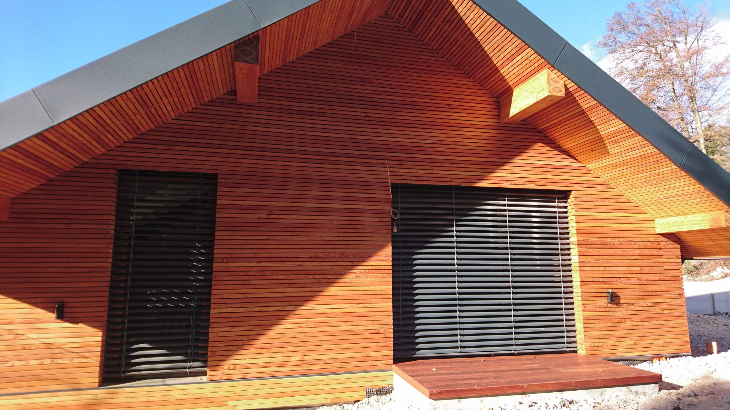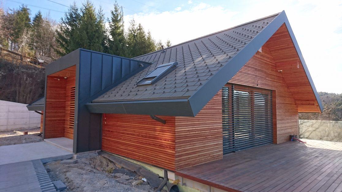 Na individualni hiši L je bil uporabljen profil ROMB. V sklopu lesene fasade so bile izdelane tudi frčade in izvedena kritina objekta.
