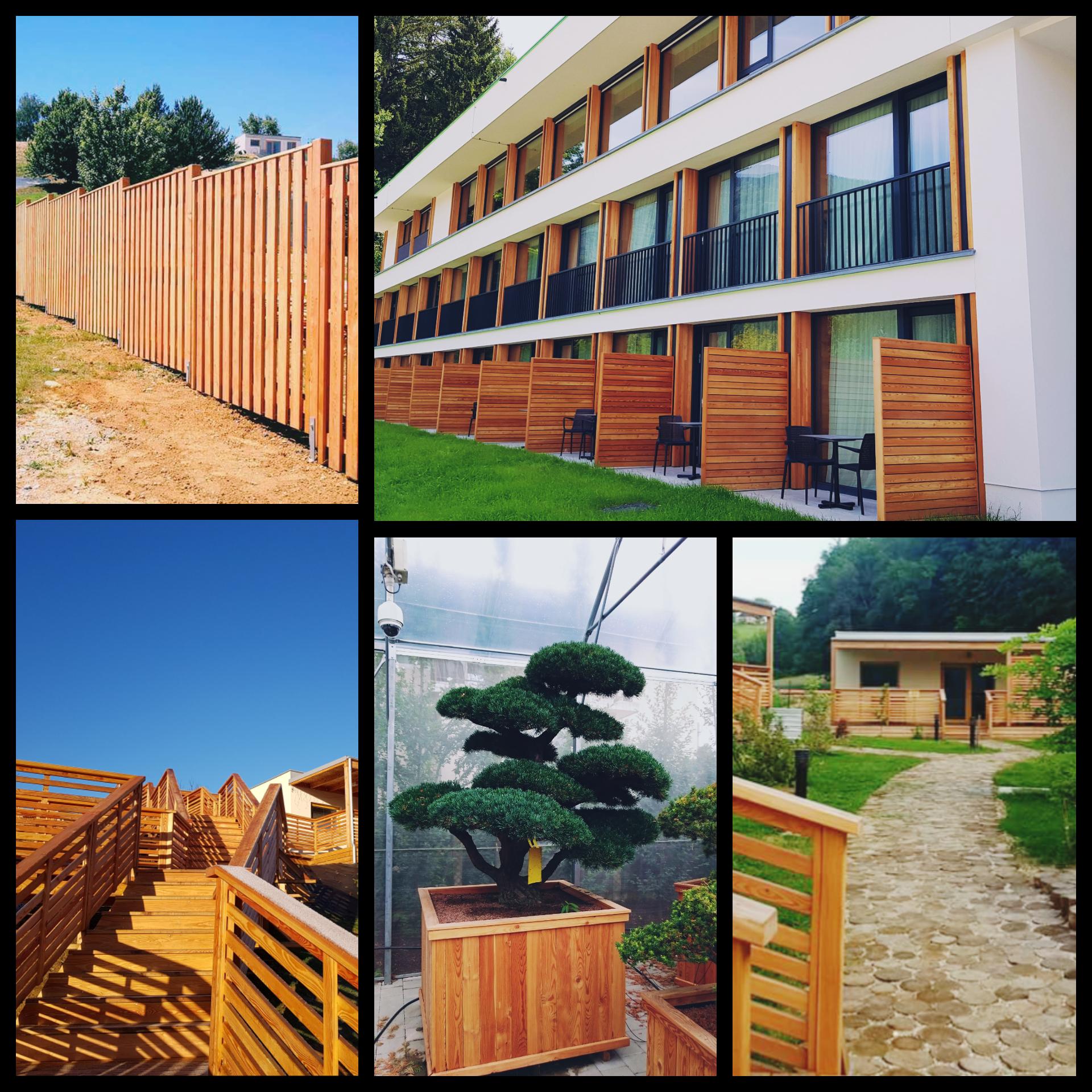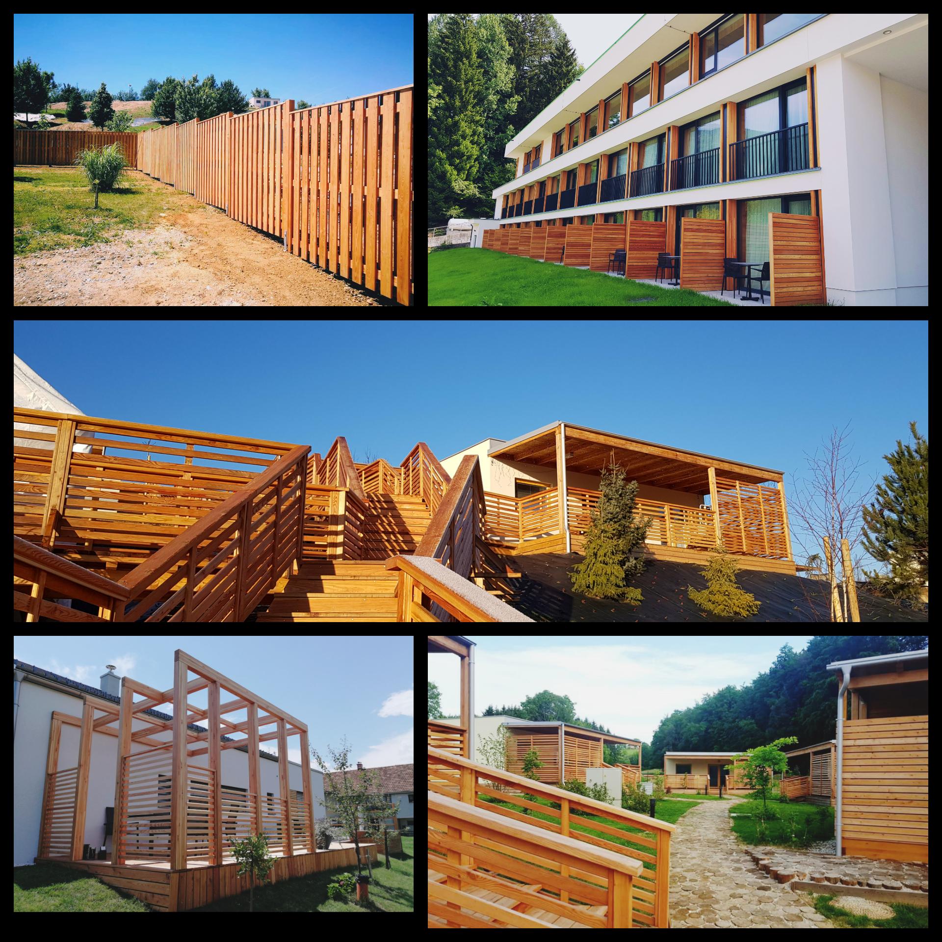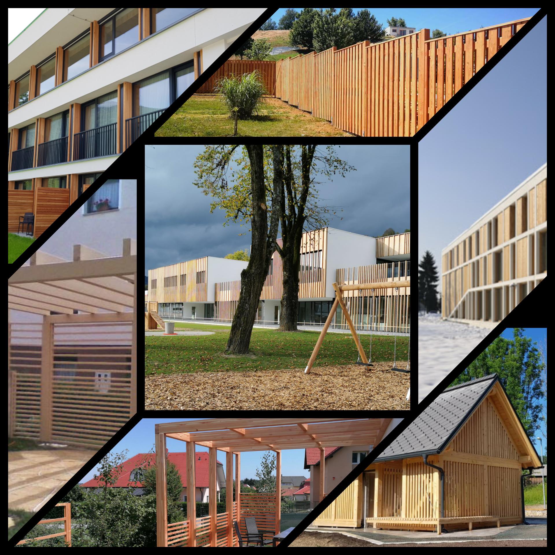 Lesene letve prilagajamo na različne velikosti in oblike fasad. Sledijo primeri letnih kuhinj, vrtnih hišic oz. lop, garaž, mobilnih hiš, počitniških enot s savno in še vrsto drugih.