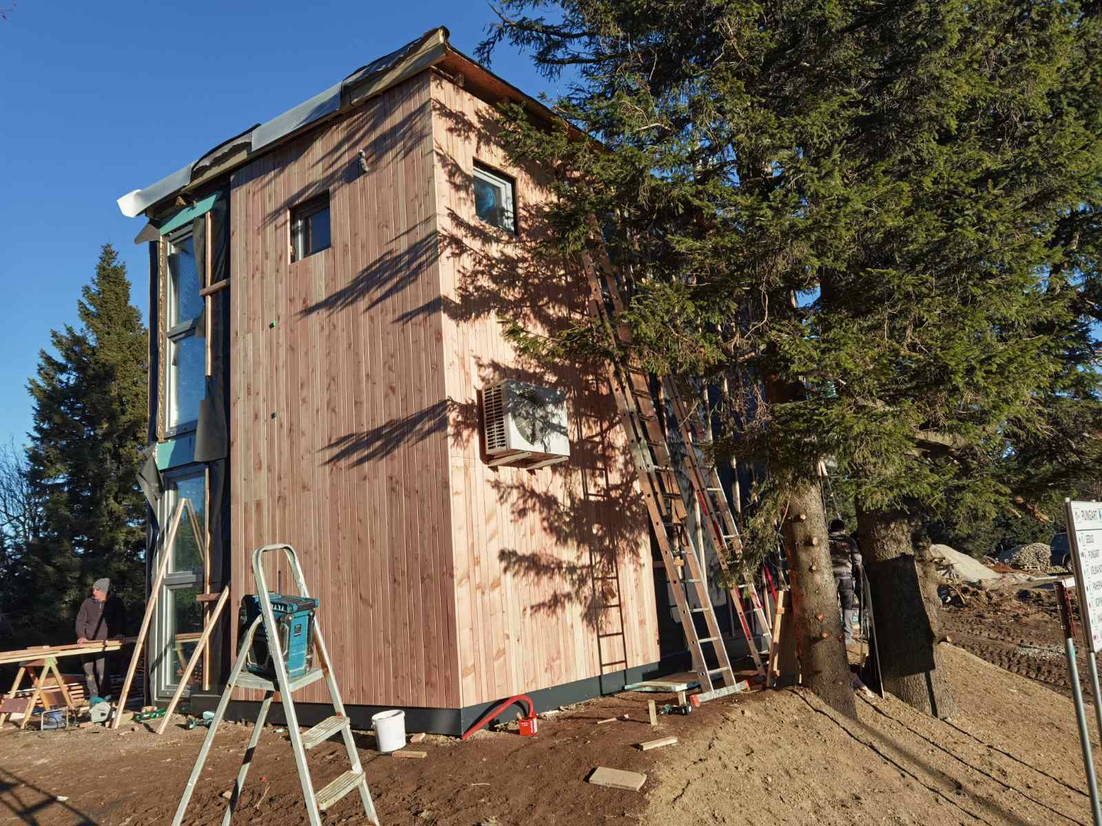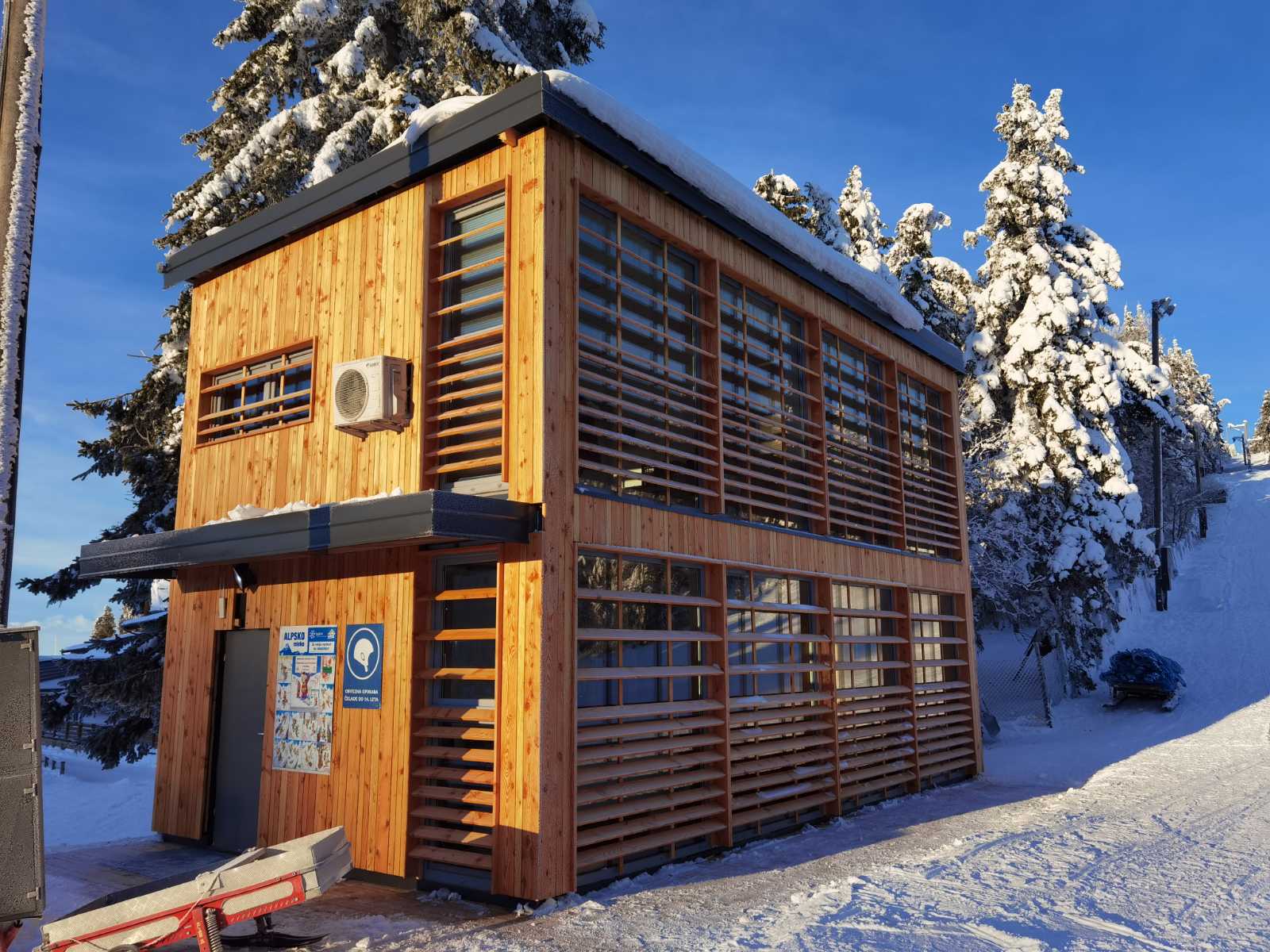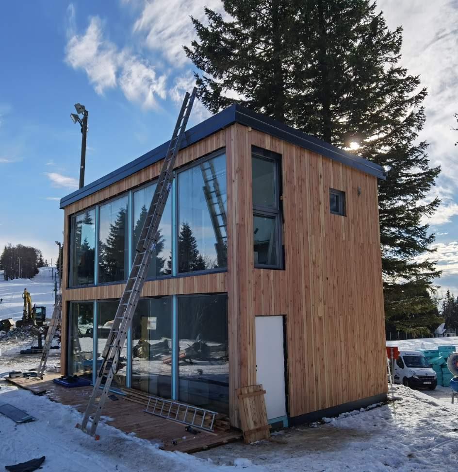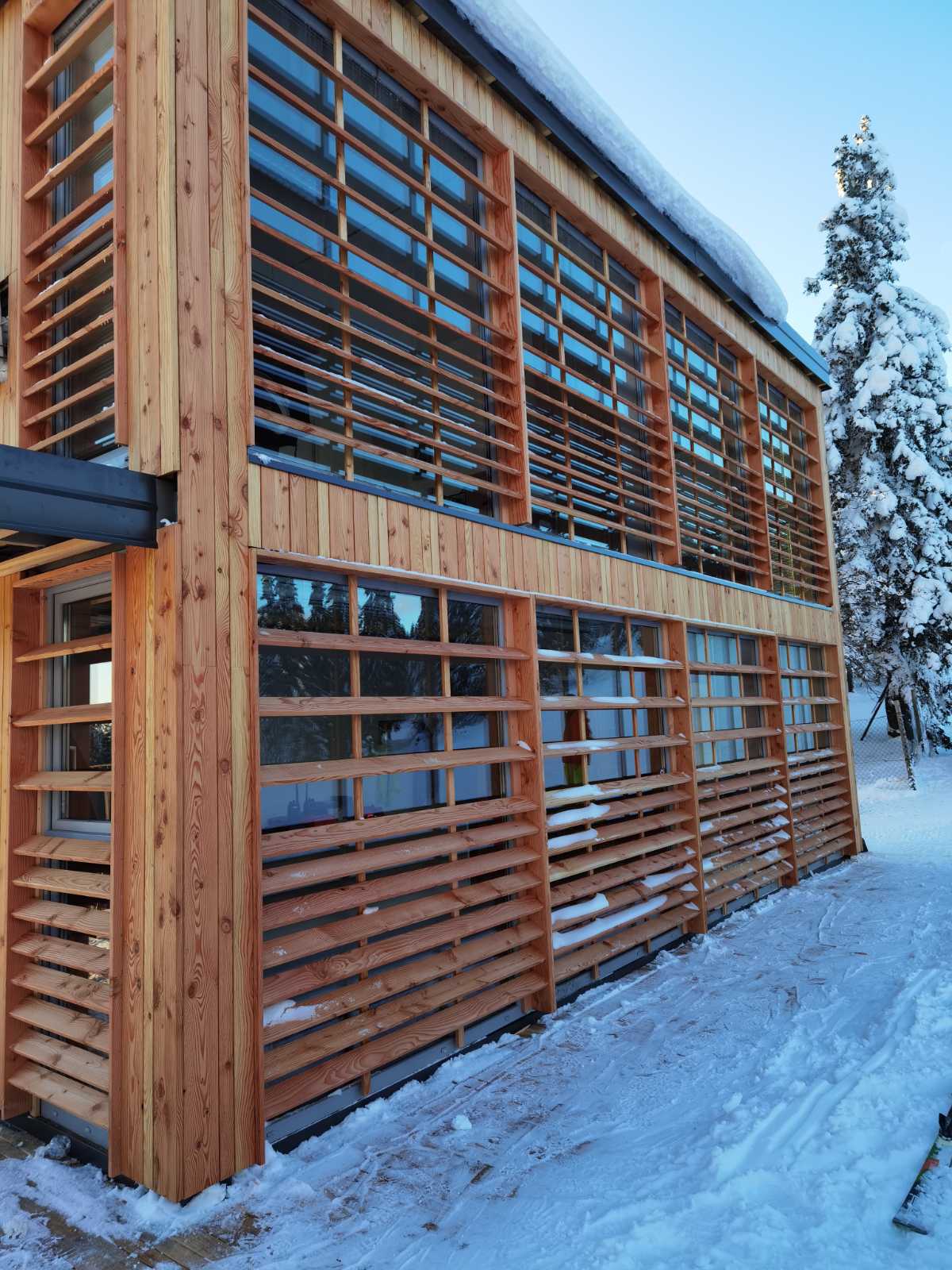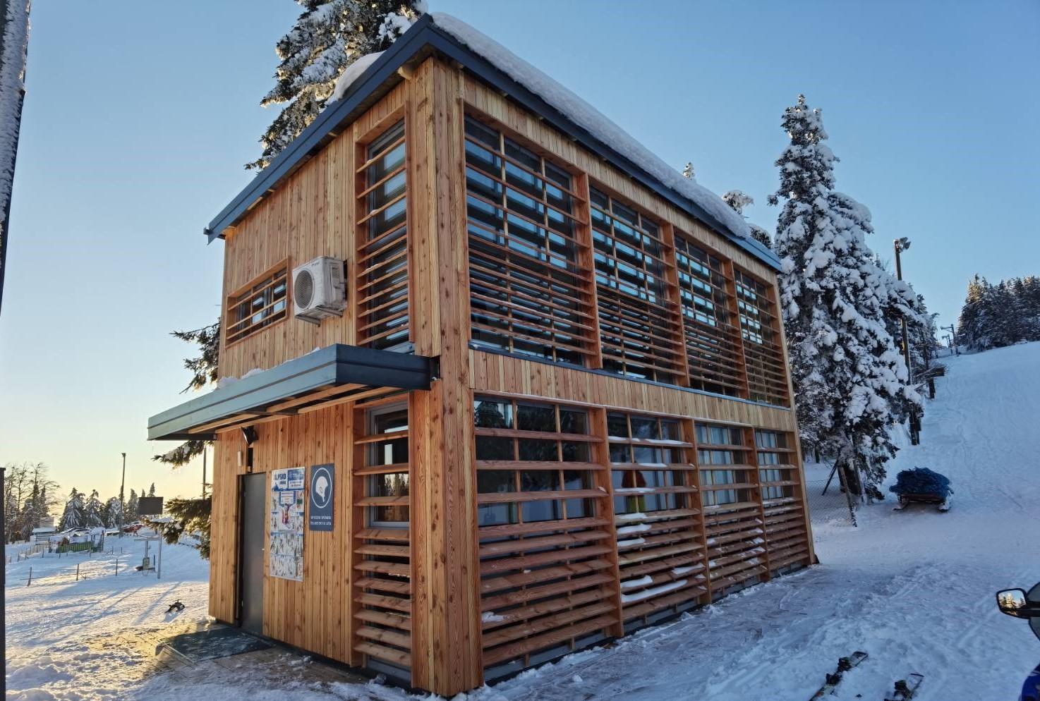 Nadzorni center smučišča ter prva pomoč smučišča Kope. Na leseni prezračevalni fasadi uporabljen les domače Duglazije iz Pohorja. Strmimo k uporabi avtohtonih materialov.
